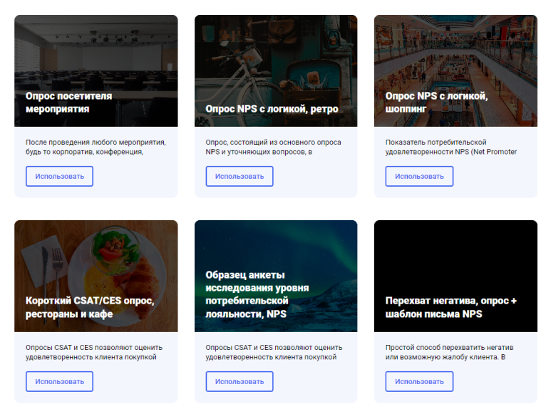 В базе шаблонов Foquz собрано множество готовых образцов анкет для опроса потребителей товаров и услуг их разных сегментов рынка. Они имеют грамотную структуру и содержат выверенные однозначные формулировки вопросов и ответов. Любой шаблон можно отредактировать под свои задачи и брендировать с использованием корпоративной символики.