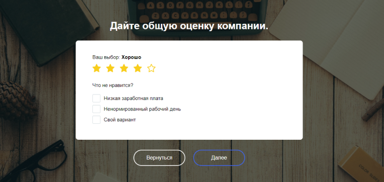 В HR-практике применяются и развернутые анкеты для оценки удовлетворенности работой. Такие опросники содержат вопросы для выяснения: