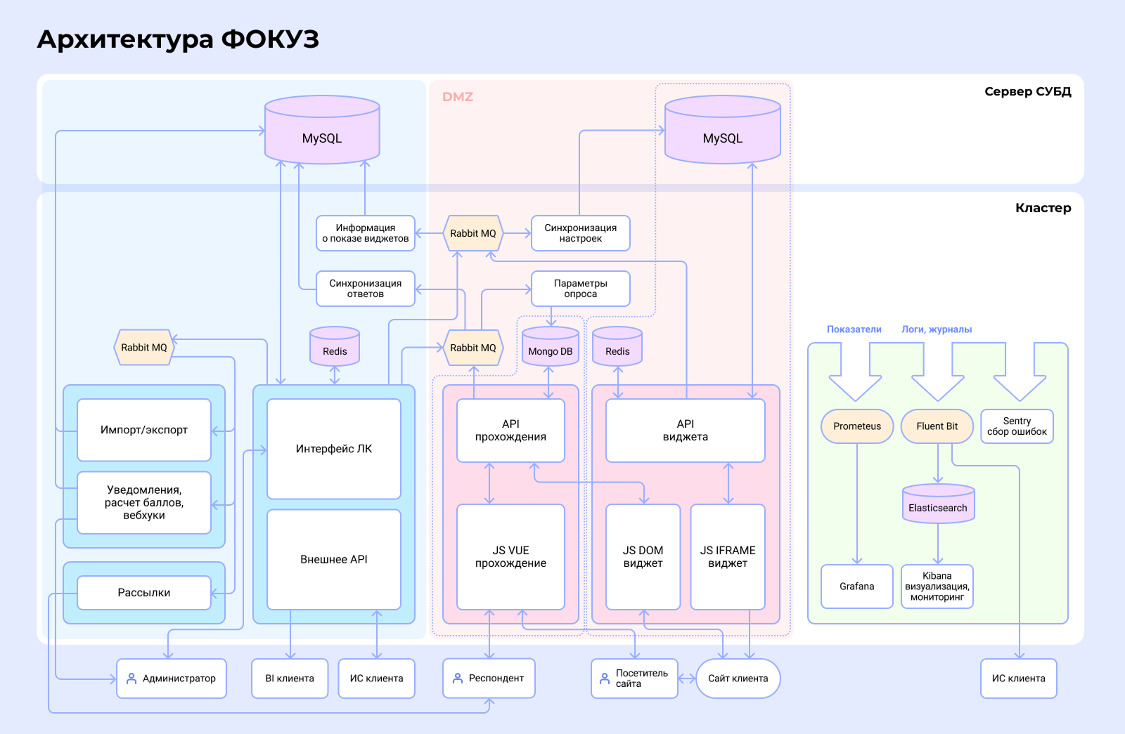 Множество требований к on-premise решениям выполняются с помощью различных небольших сервисов «внутри» одного большого. Сама по себе архитектура таких приложений довольно сложная и чаще всего требования к ним выставляются командами разработки и информационной безопасности. Но все-таки исследователям, которые подбирают сервисы онлайн-опросов, важно понимать ключевые особенности, которые будут влиять на исследования.