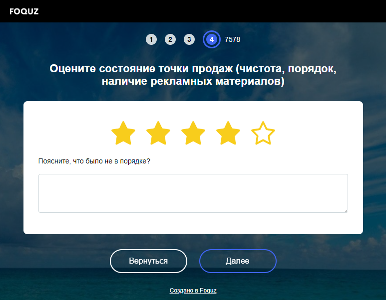 Для создания анкеты, которая одновременно является чек-листом, удобно использовать платформу онлайн опросов Foquz. Система поддерживает множество видов закрытых, полузакрытых и открытых вопросов, позволяет создавать логические правила и ветвления.