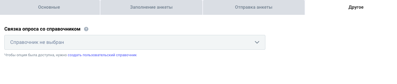Связка опроса со справочником добавляет к каждому вопросу дополнительную опцию — тегирование: из связанного справочника сможете выбрать тег, который будет привязан к этому вопросу.