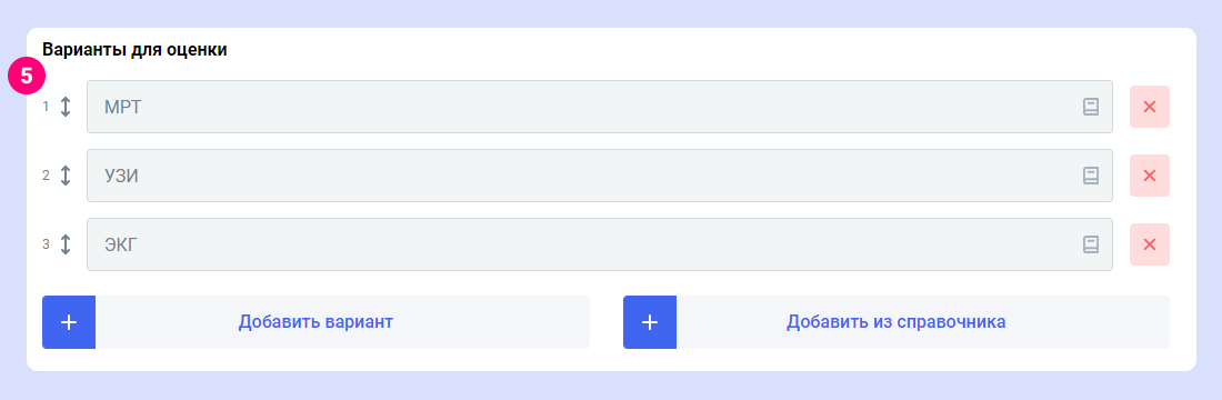 Дополнительная возможность: когда опрос связан со справочником тегов, в некоторые вопросы можно автоматически добавить варианты прямо из справочника.