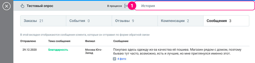 - в анкете можно посмотреть историю респондента, который её заполнил;