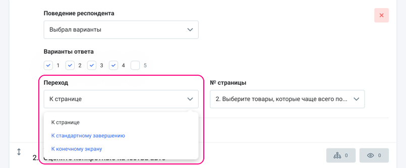 После выбора поведения респондента нужно настроить сам переход