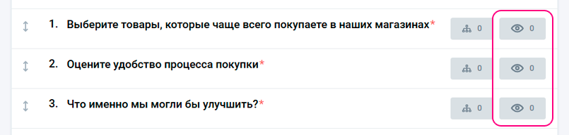 - показывать, только если: вопрос показывается только при соблюдении условий в предыдущих вопросах;