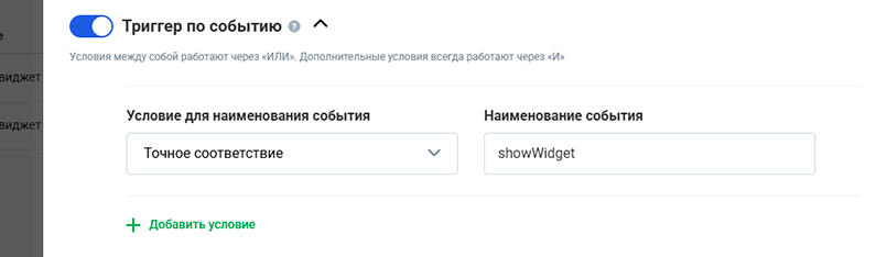 Все таргетинги работают по логике И, то есть, если вы настроили таргетинг по cookie, охвату пользователей и действиям, то виджет будет показываться только тогда, когда проверка сработает в каждом из этих таргетингов.