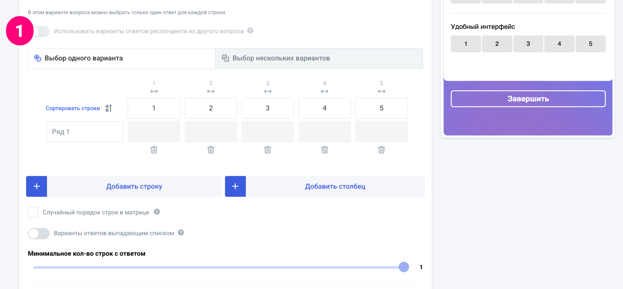- Также можно установить минимальное количество строк с ответом и включить случайный порядок строк.