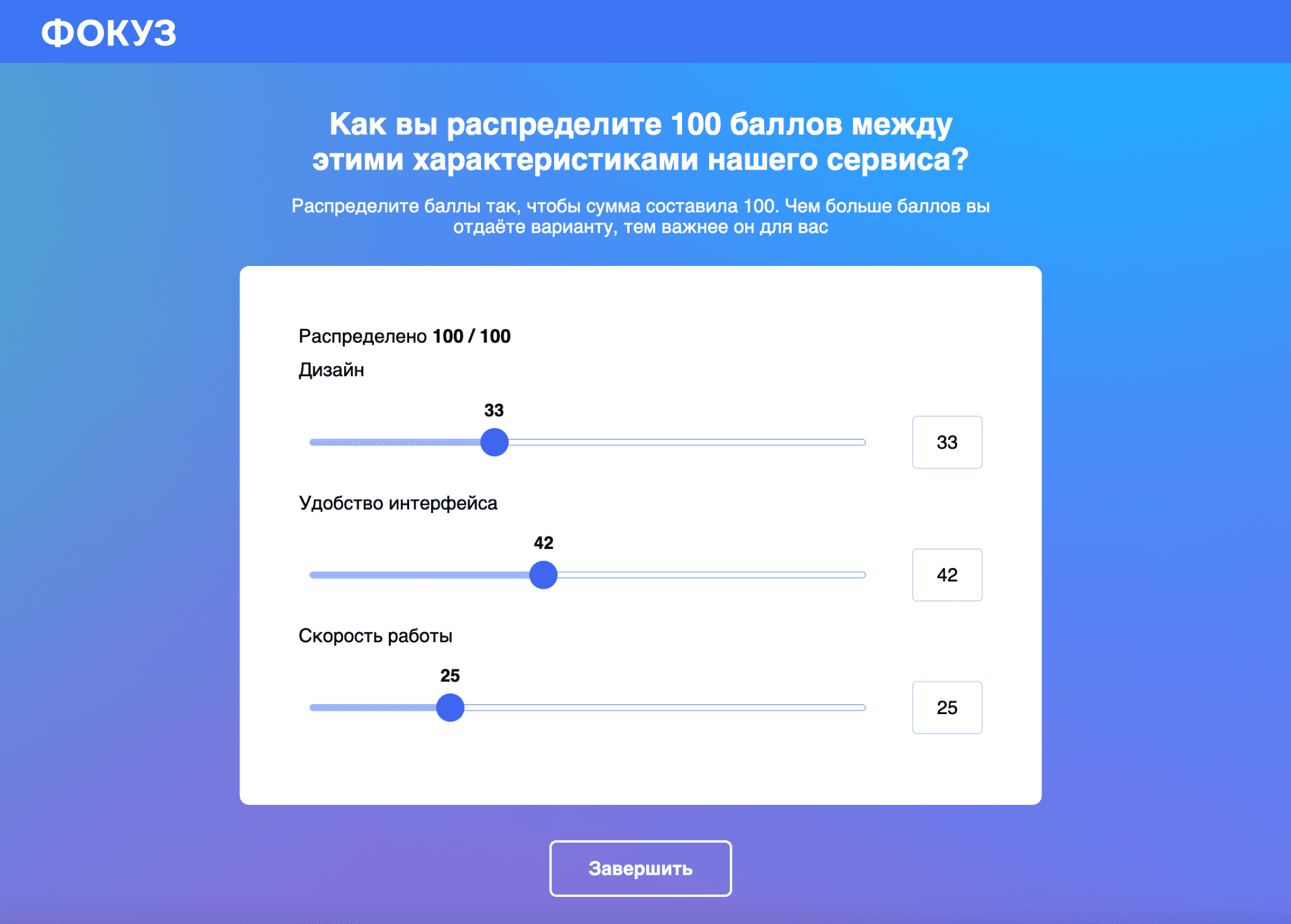 Распределительная шкала позволяет респонденту распределить заданное количество баллов между предложенными вариантами. Подходит для выявления относительной важности или предпочтений.
