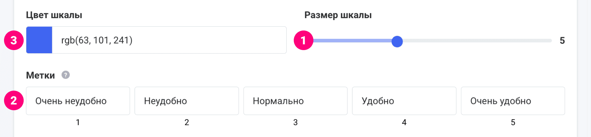 - Метки — подписи к значениям оценок.