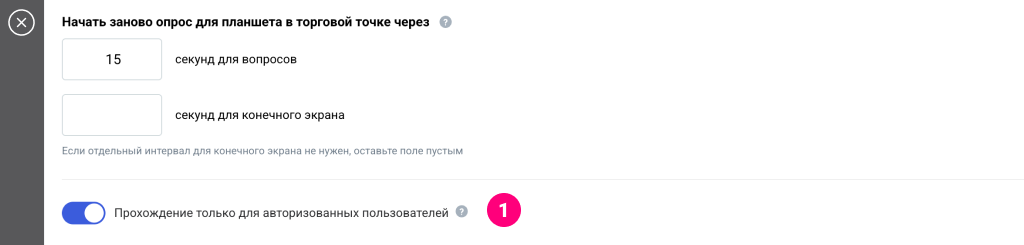 - включить опцию «Прохождение только для авторизированных пользователей» в Настройках заполнения анкеты;