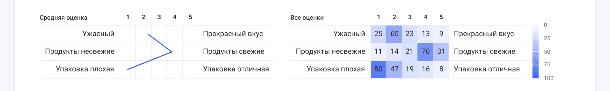 - Количество шкал: наборы пар противоположных характеристик будет отображаться.