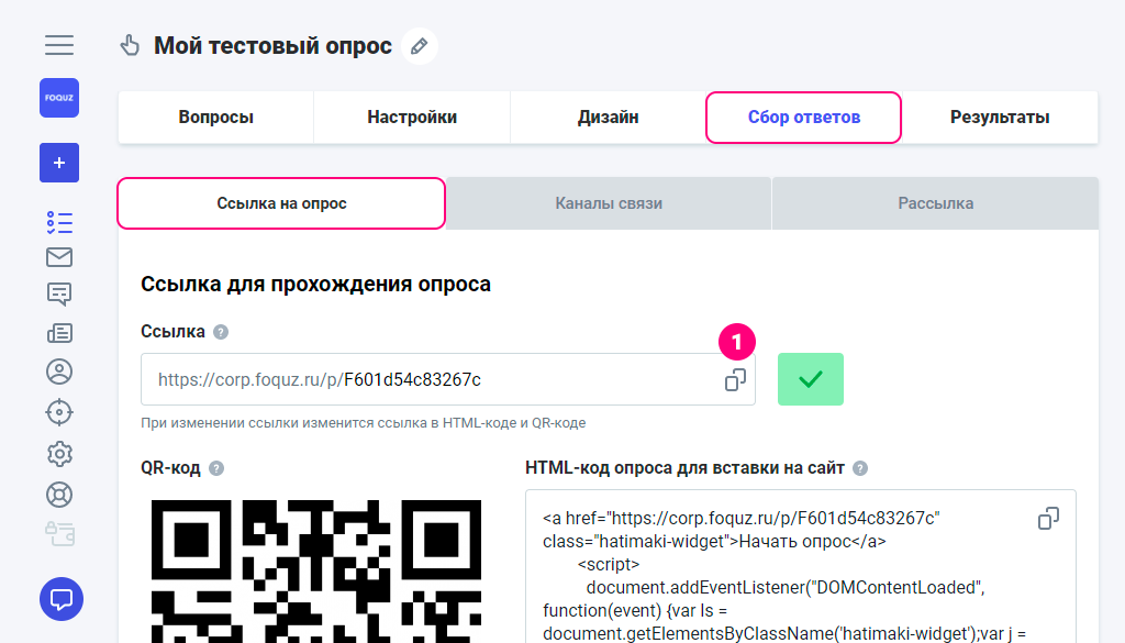 1.В опросе на вкладке «Сбор ответов» скопируйте ссылку на опрос и откройте её в браузере Chrome (если у вас Andoid) или Safari (если IOS).