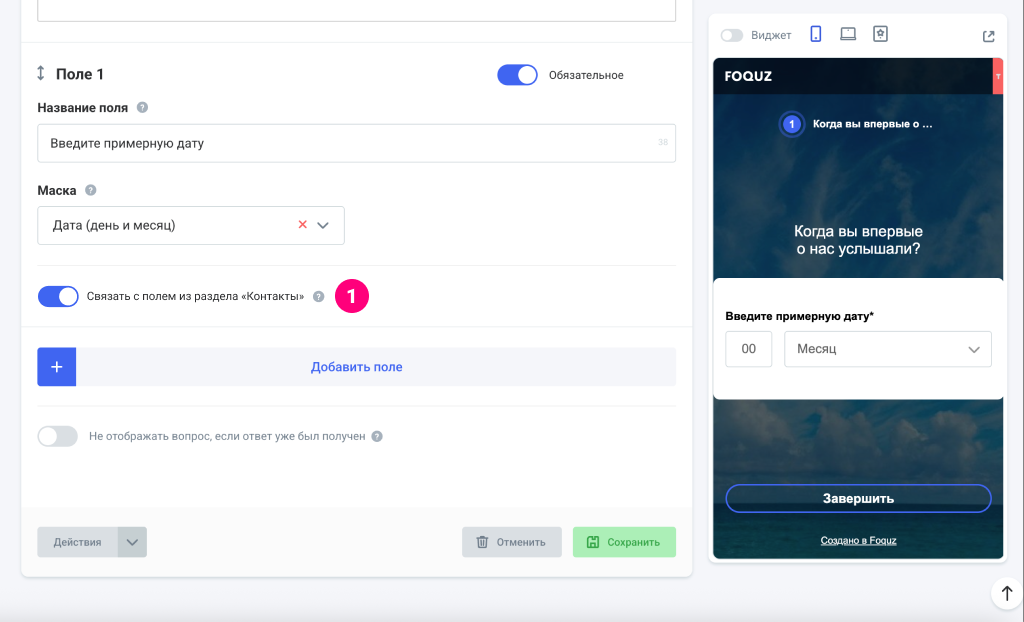- Анкета (в этом типе вопроса для каждого поля есть опция Связать с полем контакта).