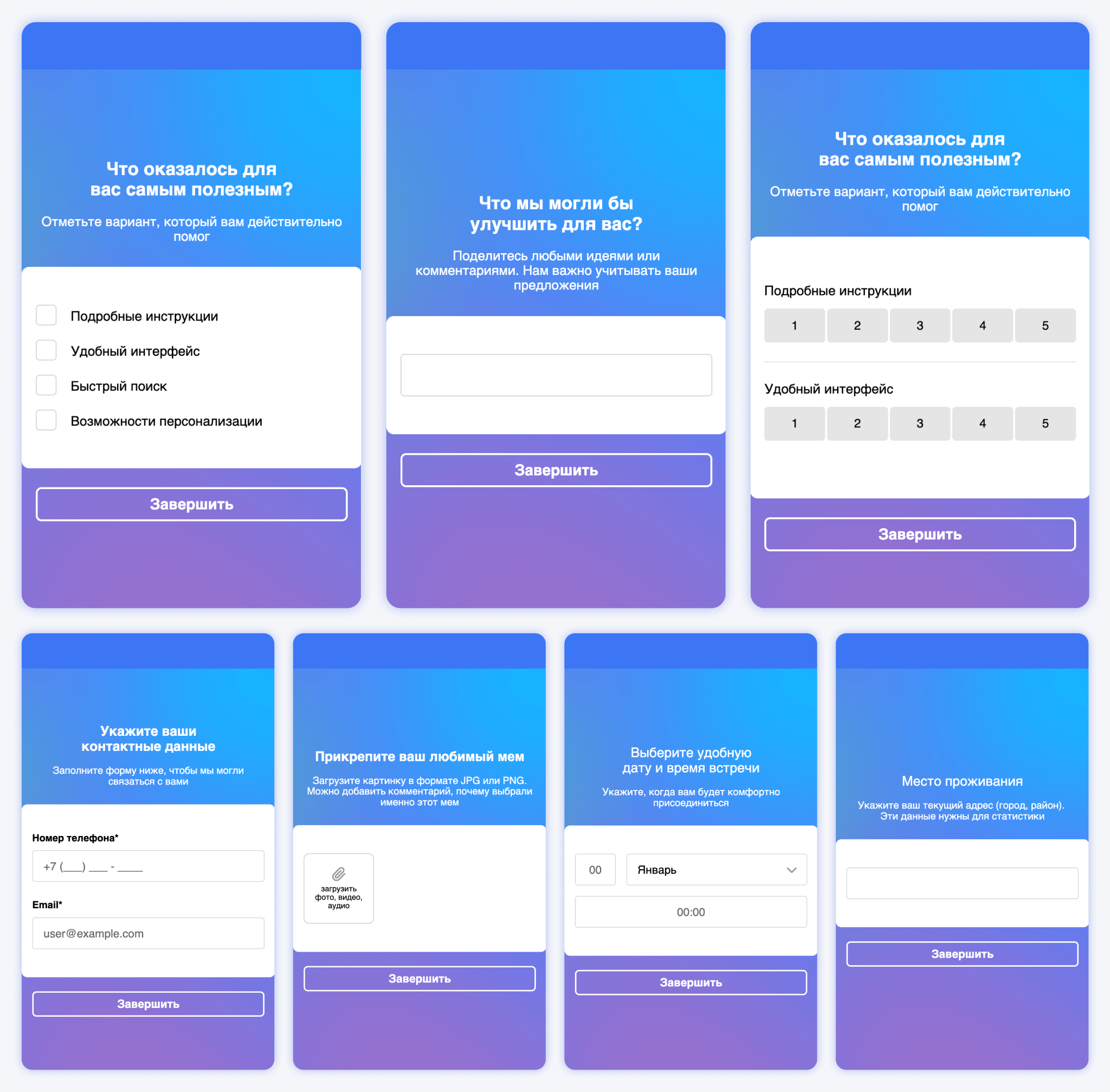 - Анкета — объединение нескольких полей в один вопрос для сбора контактной информации.
