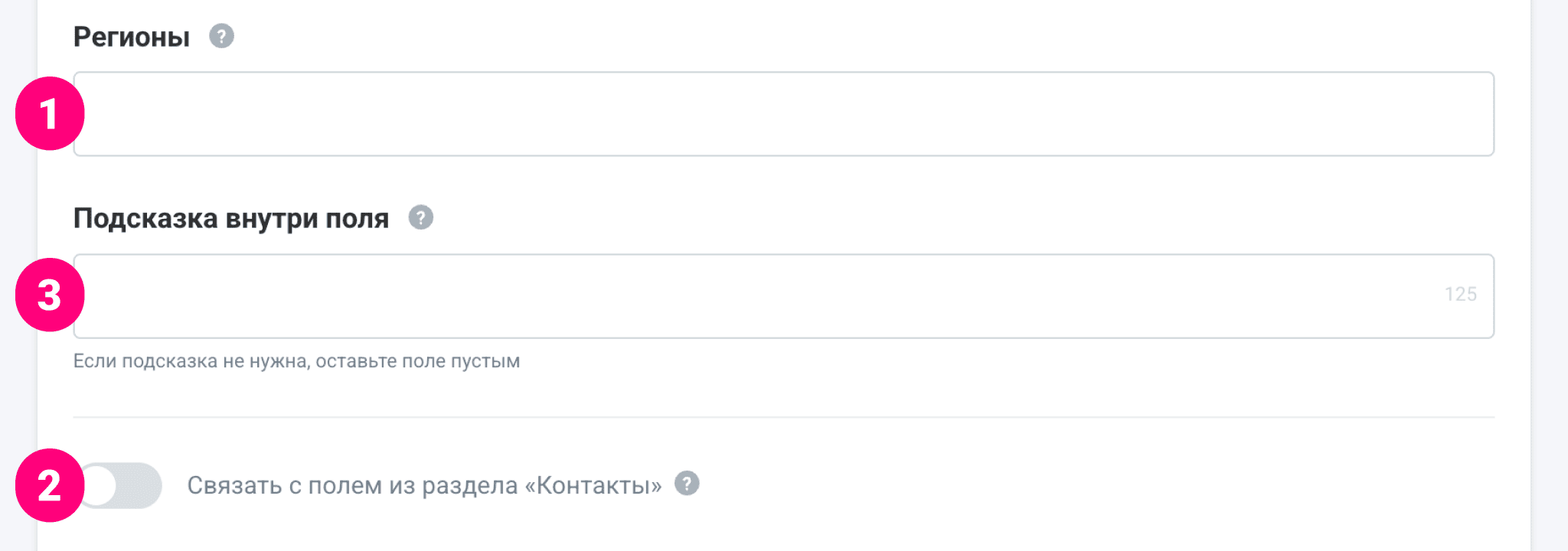 - Подсказки в поле — примеры или пояснения для корректного заполнения. Показываются внутри самих полей.