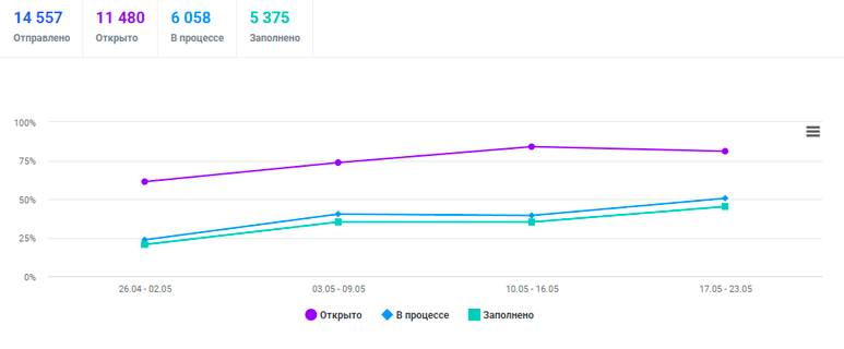 Для повышения количества заполненных анкет можно использовать напоминания. К примеру, сервис онлайн опросов Foquz позволяет настраивать сценарии анкетирования. Если респондент не заполнил опросник, отправленный по электронной почте, то через заданное время система автоматически продублирует ссылку в смс-сообщении или через мессенджер.