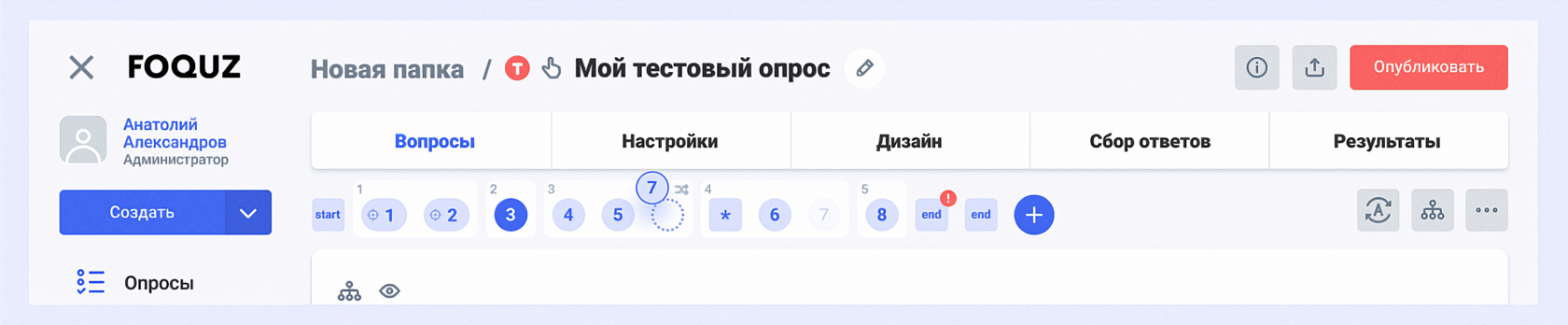 Теперь вопросы можно перемещать, находясь в режиме редактирования: достаточно зажать номер вопроса и перетянуть его в нужное место. Точно так же можно перемещать целые страницы опроса.