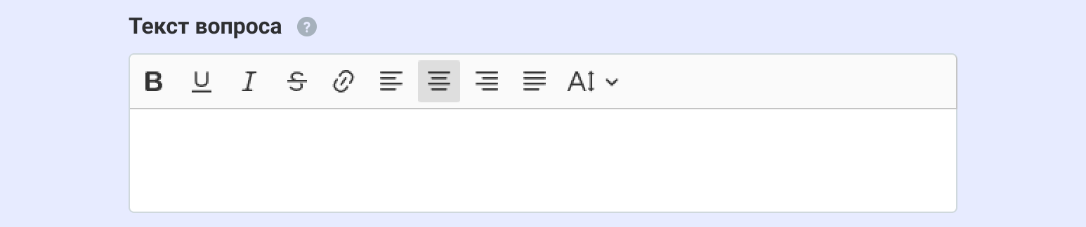 В вашей анкете есть вопросы с большим текстом и он сбивает весь дизайн? Отредактируйте текст любого вопроса: жирный, курсив, подчеркивание, размер текста и зачеркнутый. А также можно вставить в этот текст ссылки. Узнать больше о редакторе текста вопроса.
