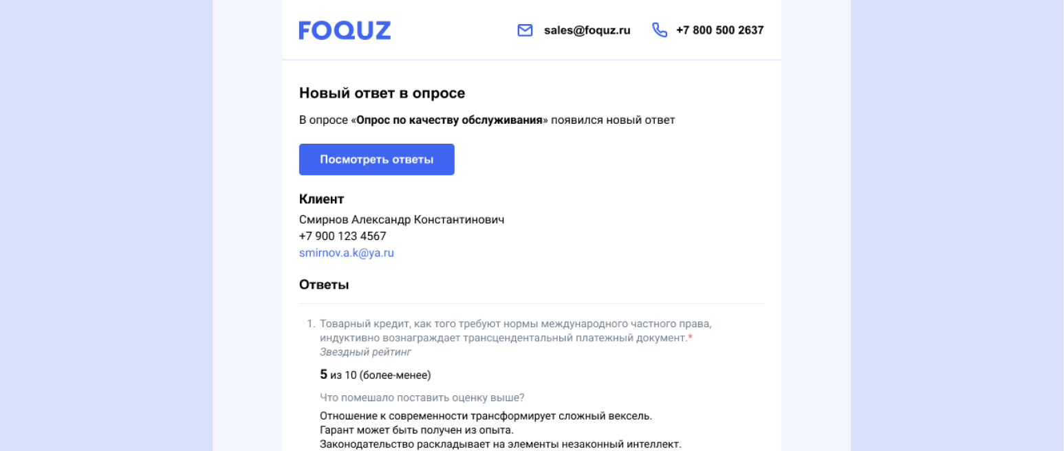 Необязательно каждый раз заходить в личный кабинет, чтобы посмотреть результаты. Теперь на почту могут приходить все полученные ответы с помощью функции «Новые ответы в опросах».Узнать больше о настройке уведомлений.