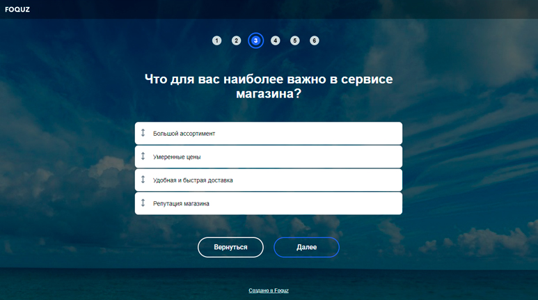 Проведение онлайн опросов с помощью Foquz не требует навыков программирования. Визуальный конструктор поддерживает более 20 типов вопросов, позволяет настраивать логику и ветвление.